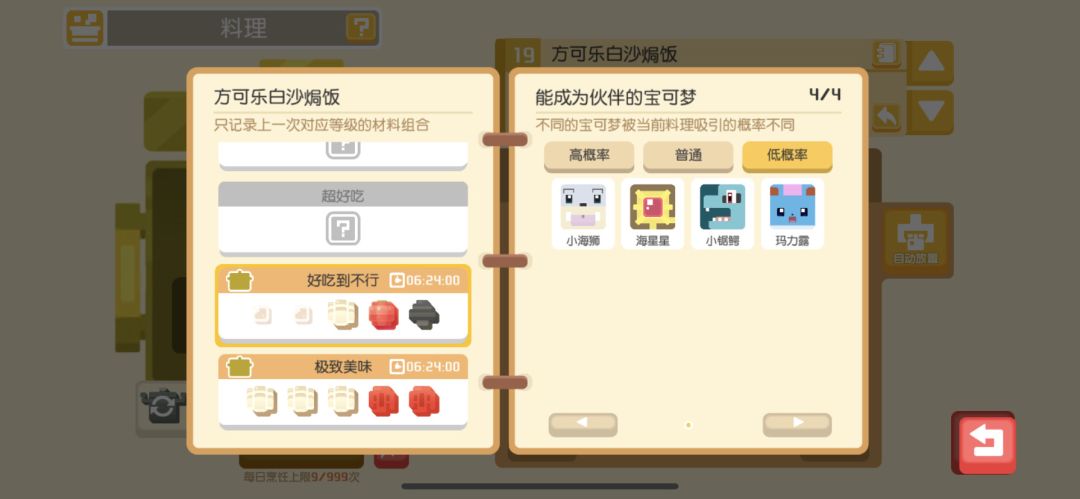 我建议大家是像我下图一样 煮好吃到不行可以了,性价比很高。小珍珠是打新关卡得到的,关卡通关会送,白沙岩通关也会送。