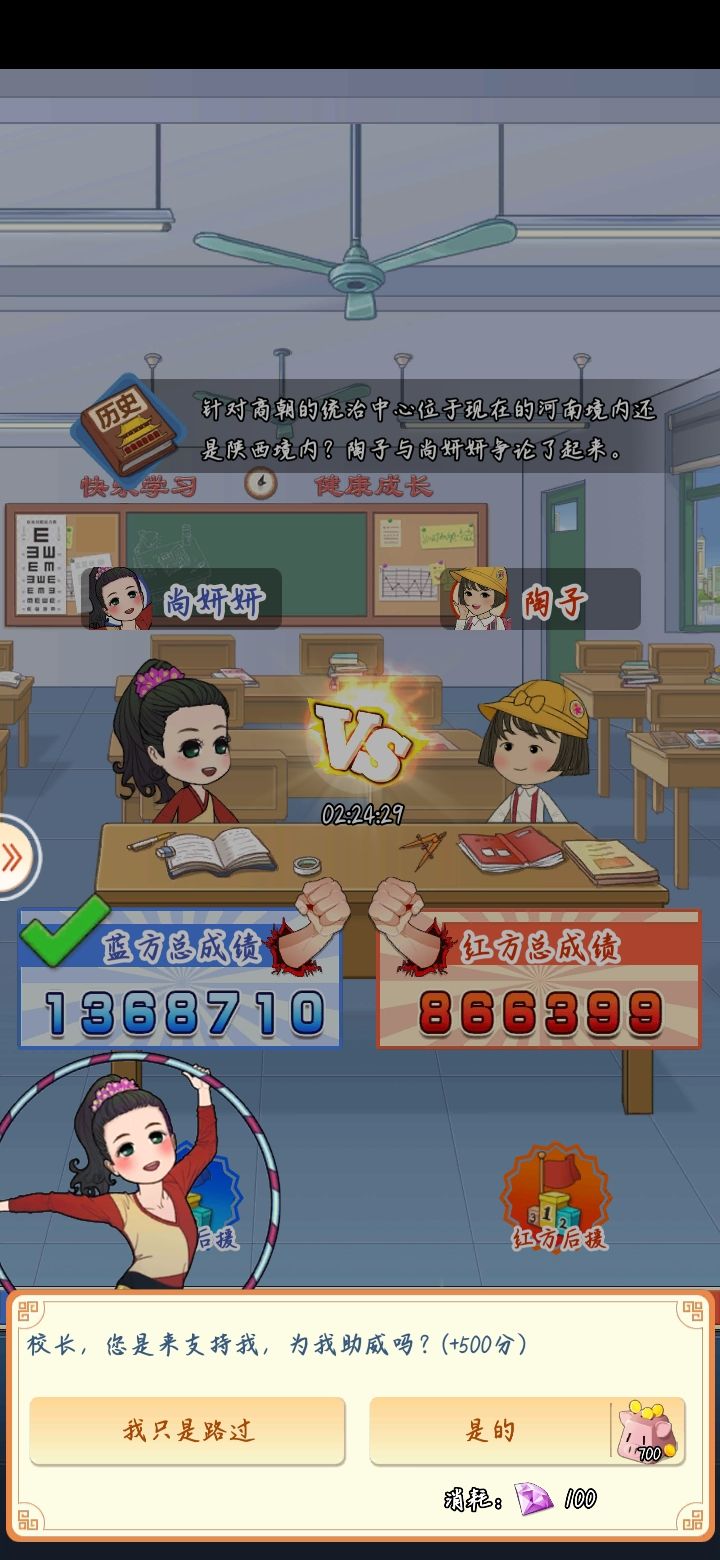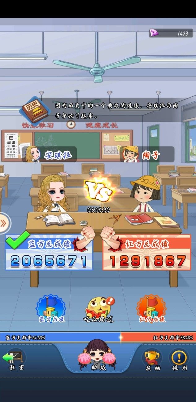 但是也不是说高品的角色就一定是支持率多的,所以在前期选择哪个学生支持尤为关键。