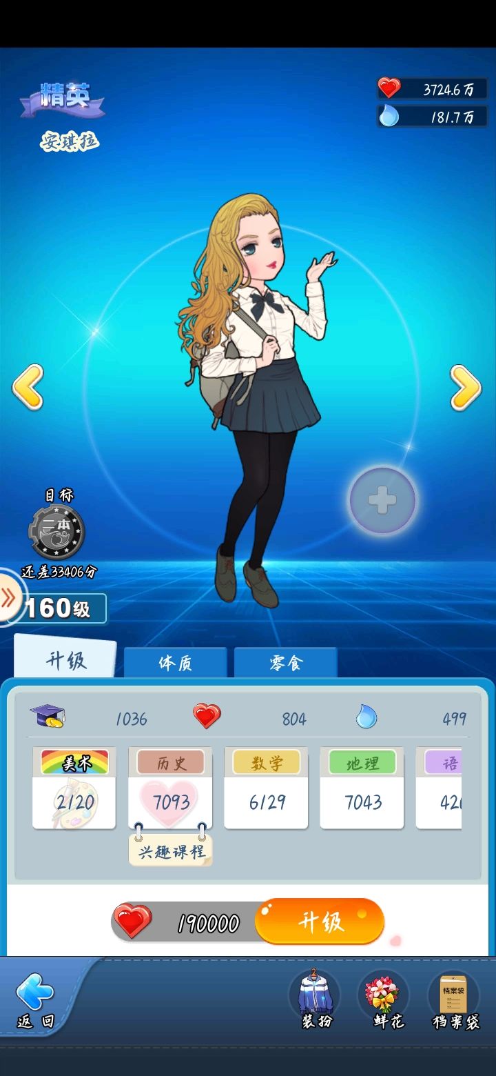 在这个学生升级界面的右下角,通过献花可以让情谊老师针对学生兴趣课程科目提分,记住啊!是兴趣课程!不是开了的都可以!!!