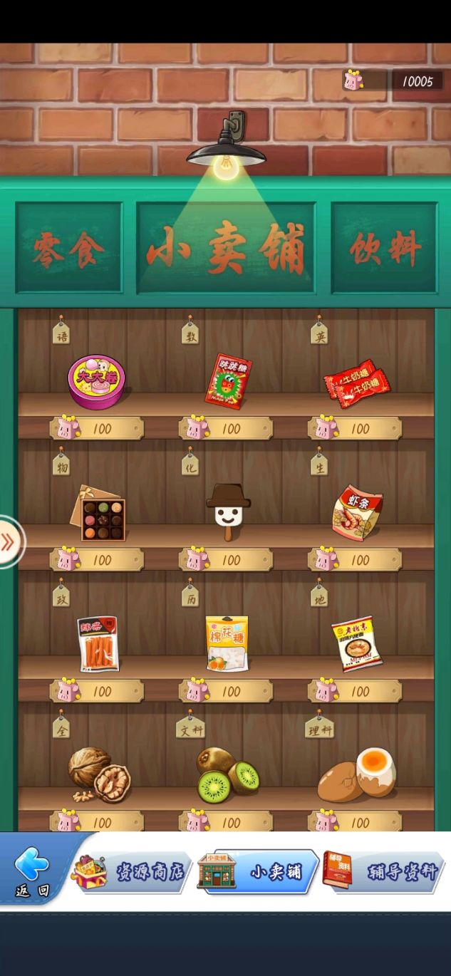 吃零食可增加对应科目分,一个临时加10分,可在小卖部购买相应零食。