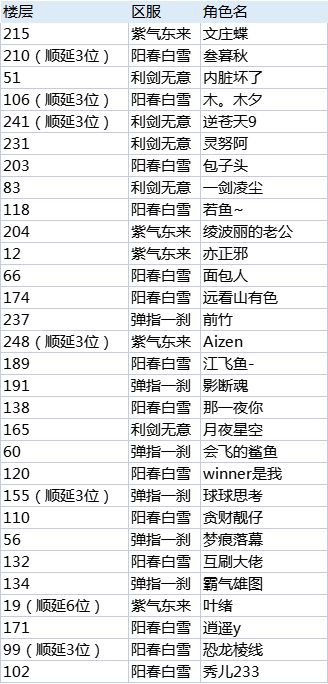 若抽中的少侠没有按照回帖要求,则顺延3位少侠楼层。