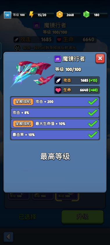 特性技能“棱镜激光”:每隔一段时间释放数条反射激光(每次可发射多条激光,每条激光可造成4段伤害,每次伤害造成关卡内战机总攻击力*50%)