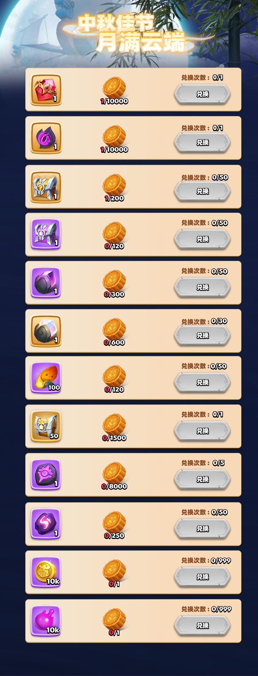 ■ 中秋月饼:中秋节最常见的食品和礼品,寓意团圆美好。兑换活动所需的特殊道具。可在签到活动、每日礼包和日常挂机掉落中获得。