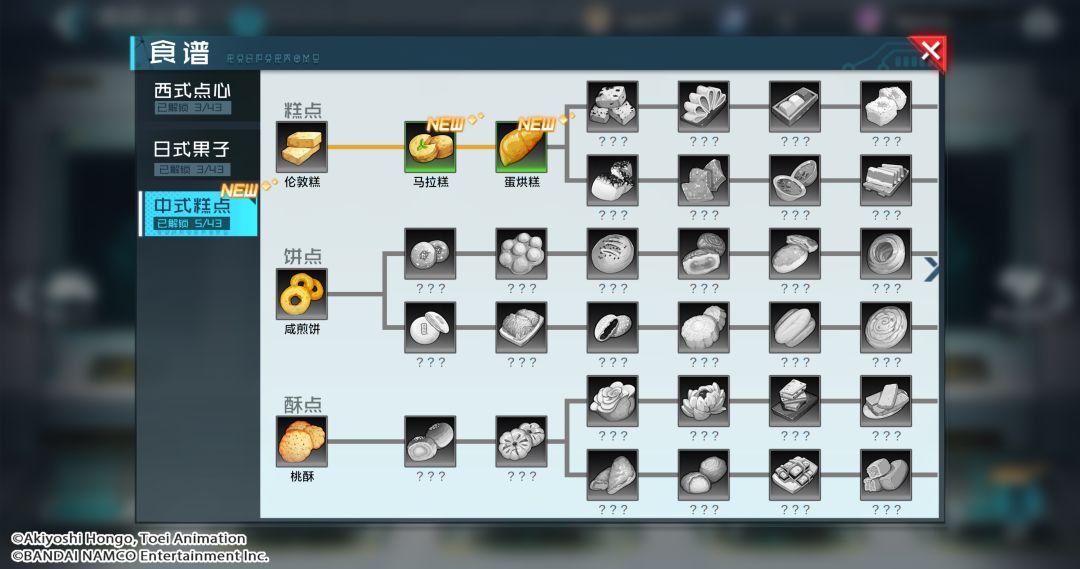 点心工坊一共有3种点心工坊:中式工坊、西式工坊、日式工坊,对应可以生产中式糕点、西式点心和日式果子。