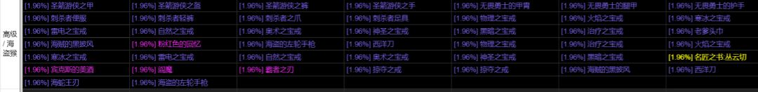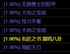 [1.96%] 刺杀者便服 [1.96%] 刺杀者轻裤 [1.96%]刺杀者之爪 [1.96%]刺杀者足具 11.96%]物理之宝戒 [1.96%]火焰之宝戒 [1.96%1寒冰之宝戒