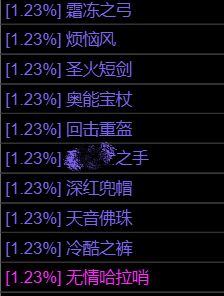 [1.23%] 烦恼风 [1.23%]暴雨梨花针 [1.23%] 古木法杖 [1.23%]古木法杖 [1.23%]迅疾之弓[1.23%]迅疾之弓[1.23%1圣火短剑