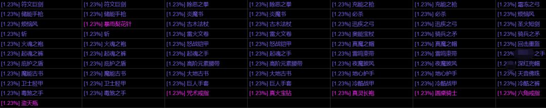 [1.23%] 毒煞之手 [1.23%] 毒煞之手 [1.23%]咒术戒指 [1.23%]真火宝钻 [1.23%]真灵长袍 [1.23%] 圆桌骑士 [1.23%] 六角戒指