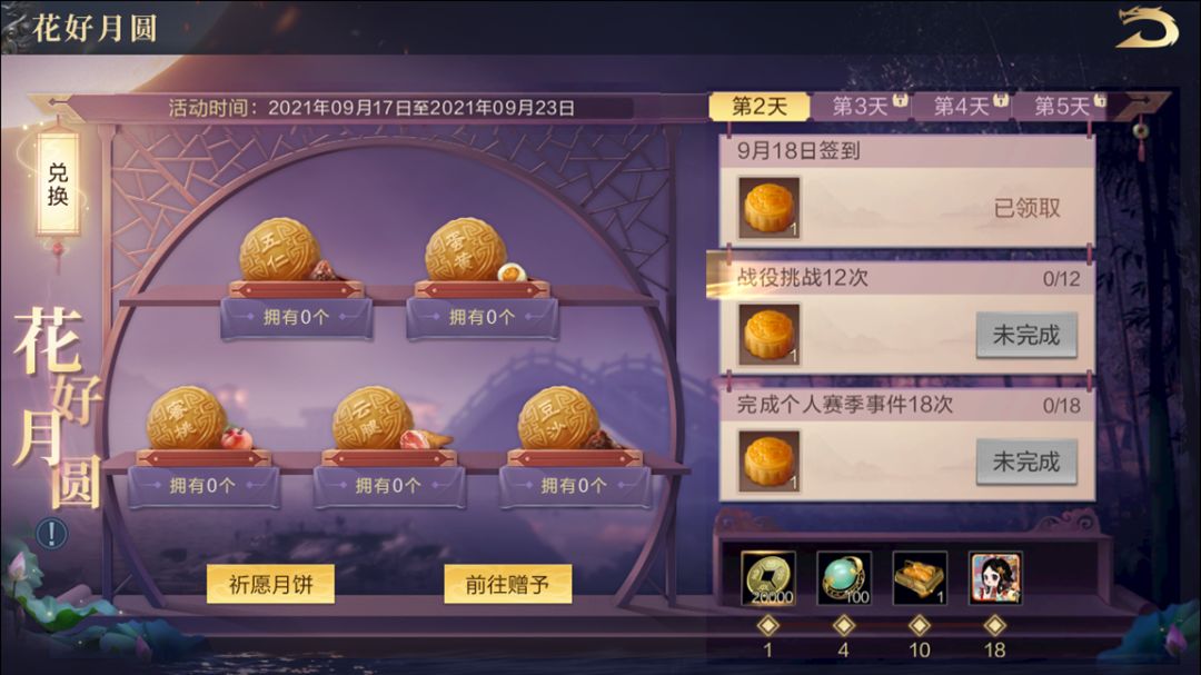 活动期间,游戏内将开启花好月圆福利活动,主公们完成每日任务和活动任务,就可获得月饼,收集不同的月饼即可兑换珠玉、紫色武器等诸多好礼。