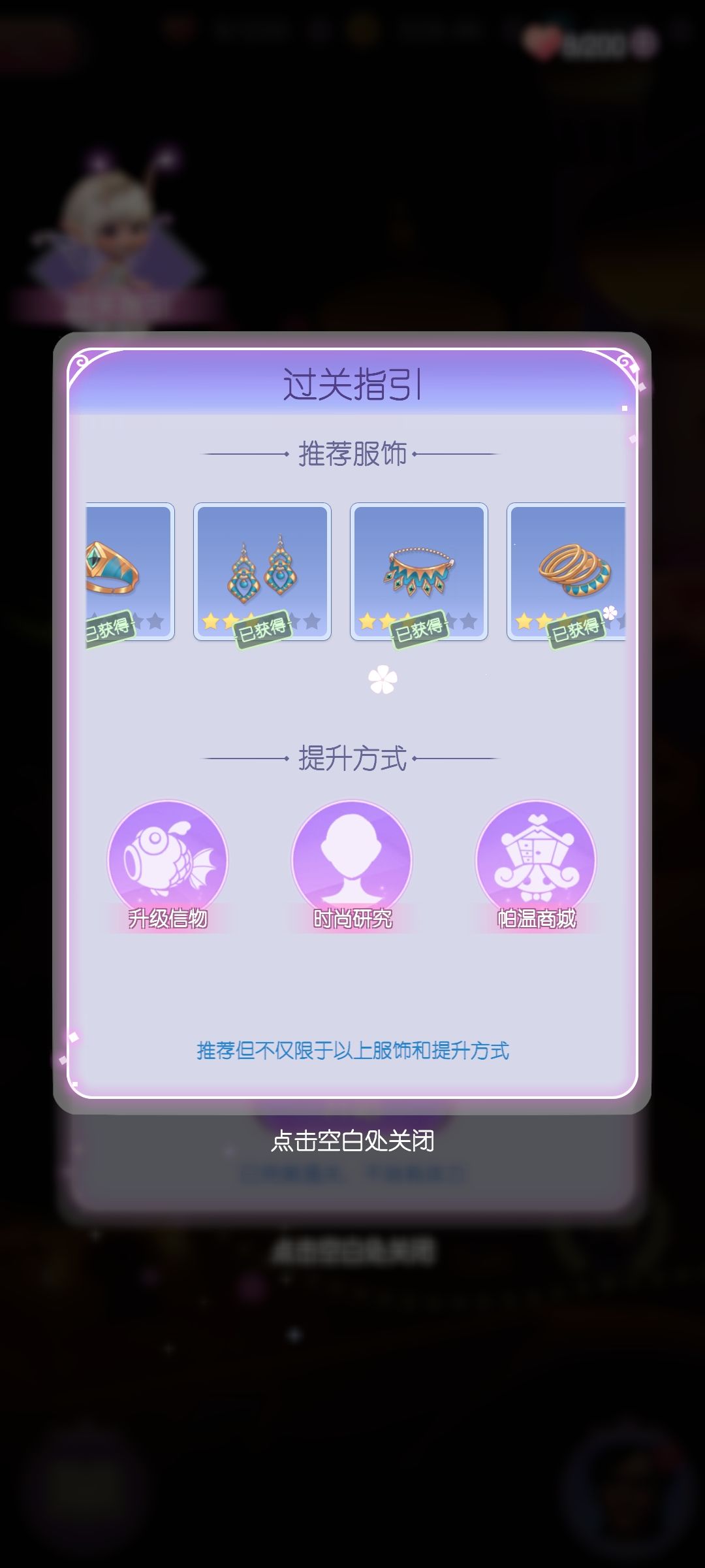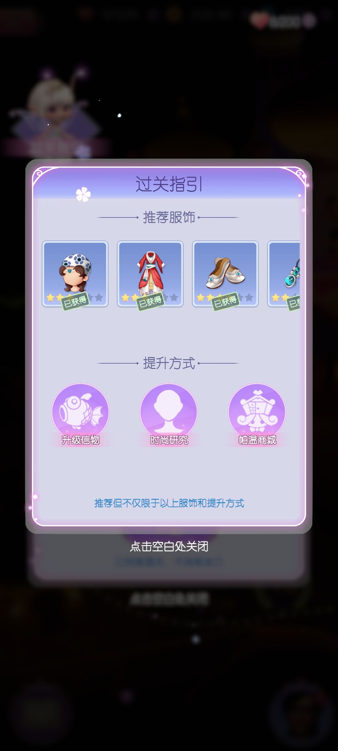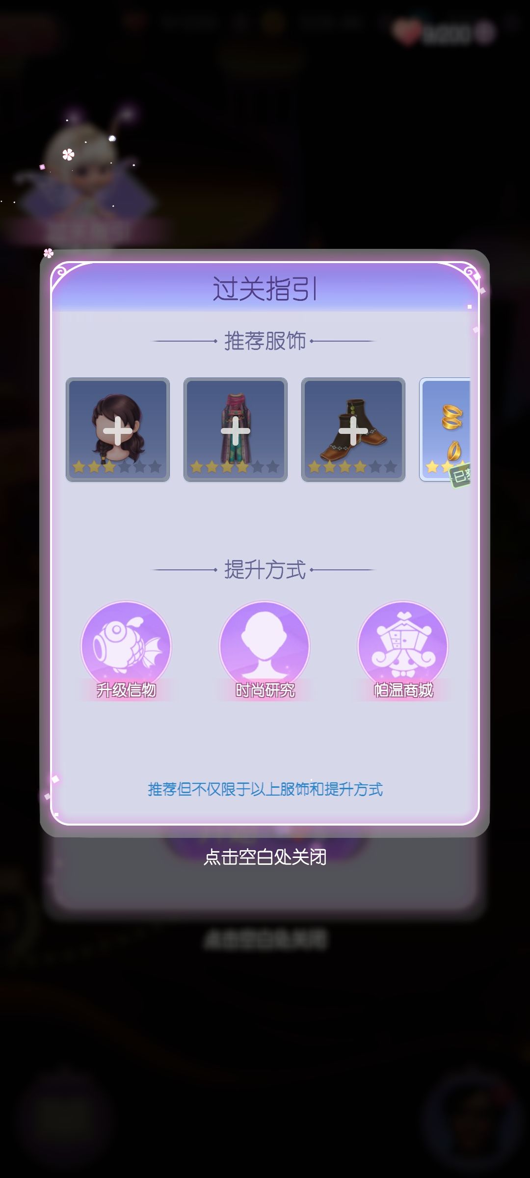 因为是神灯繁衍出的一个小故事,最好把神灯都通关再开这本,衣服会齐,不会卡关。因为我早就通关了一些关卡所以直接放了推荐服装。