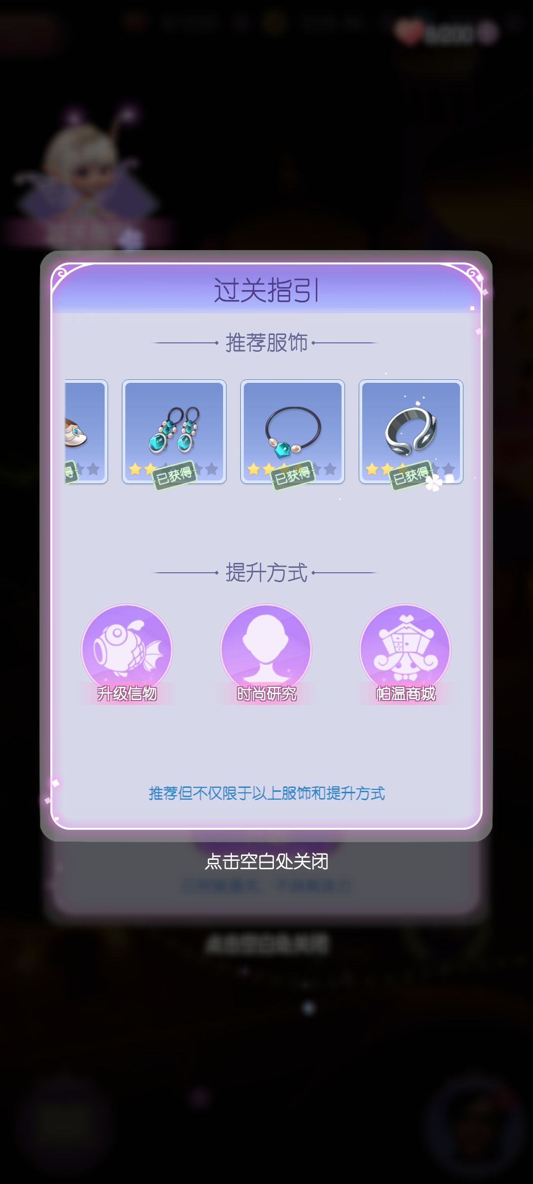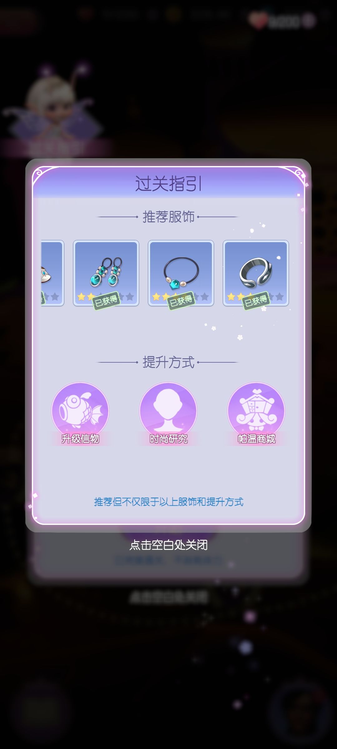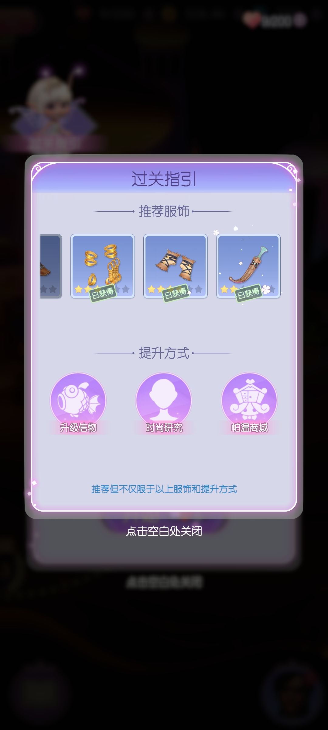 因为是神灯繁衍出的一个小故事,最好把神灯都通关再开这本,衣服会齐,不会卡关。因为我早就通关了一些关卡所以直接放了推荐服装。