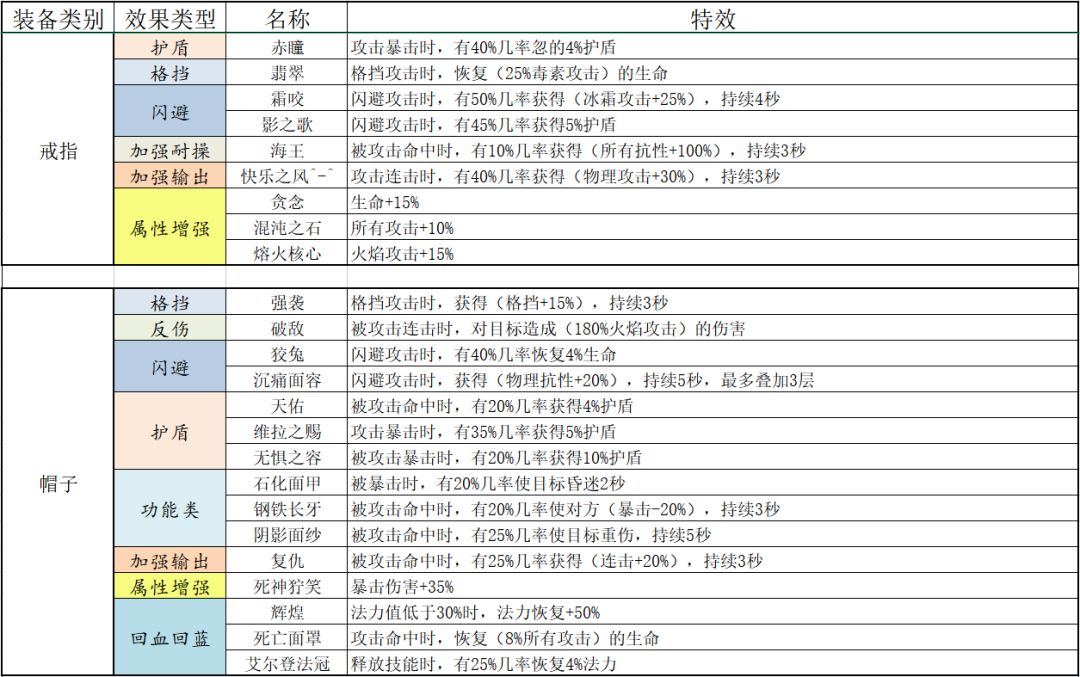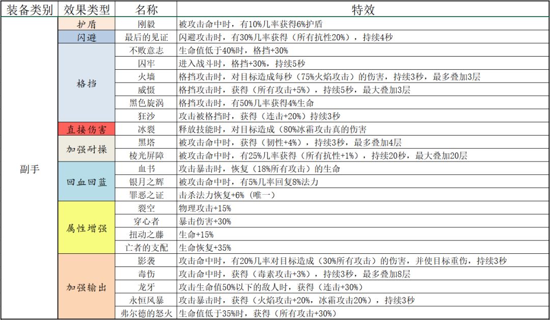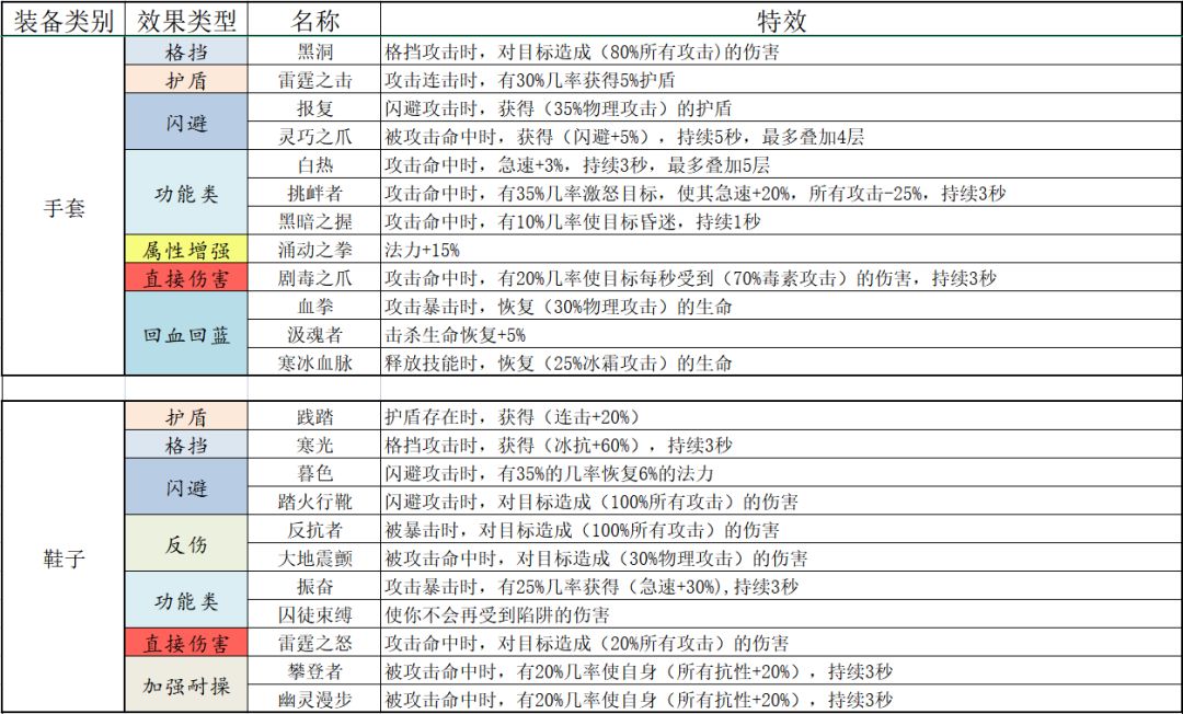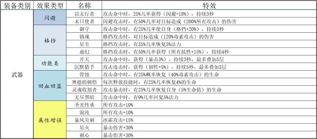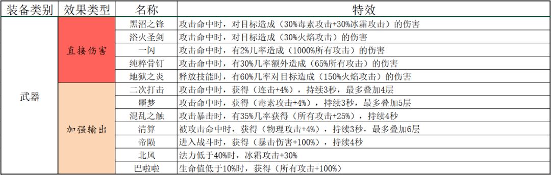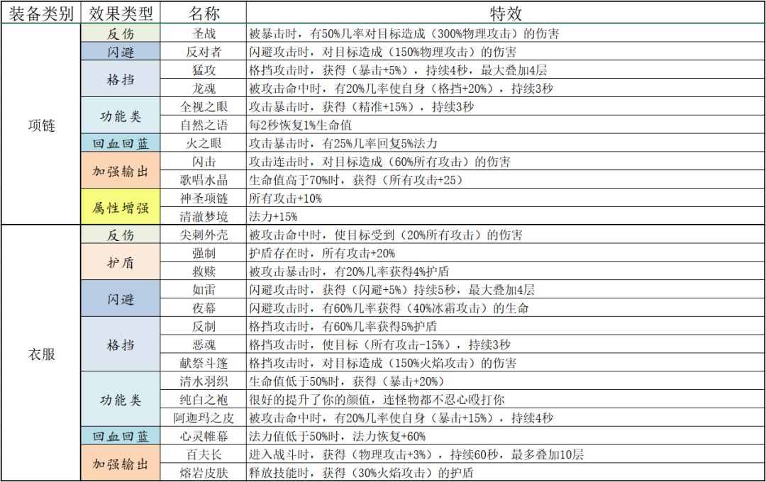 *注:只整理了散件装备的专精效果,套装装备的专精效果均为“激活对应套装部位”