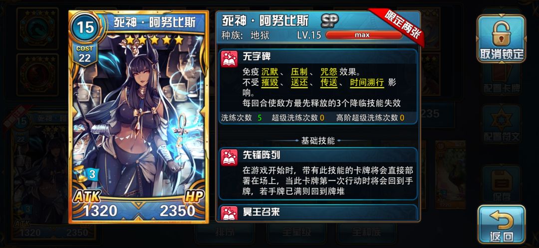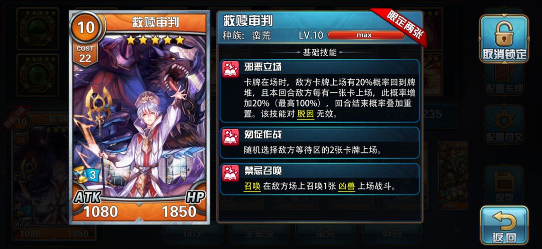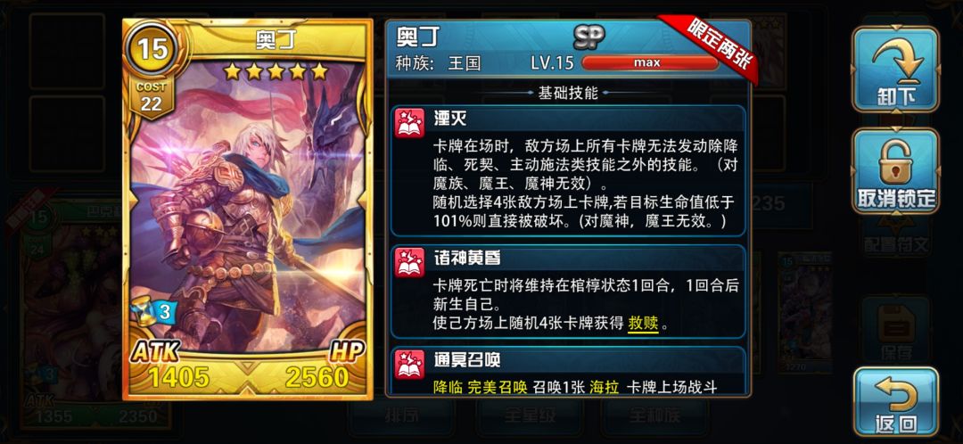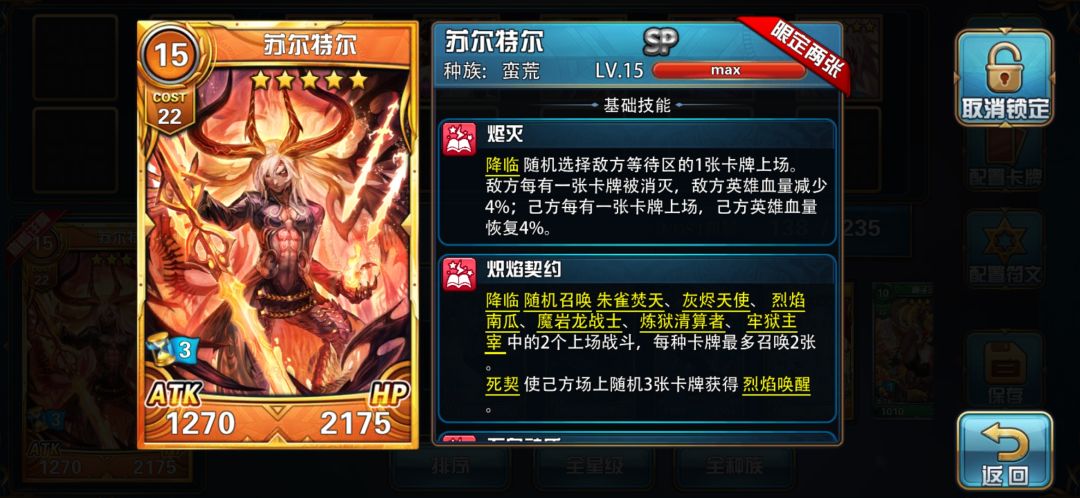 如果对面没有赵飞燕,晶璨女王,神族卡,就不用上苏二,刷开局,苏二不能上场,一直手动打到对面手卡最后剩下下不来的卡,才上苏二把卡拉下来吊打。用救赎审判更好,苏二容易把对面打死。