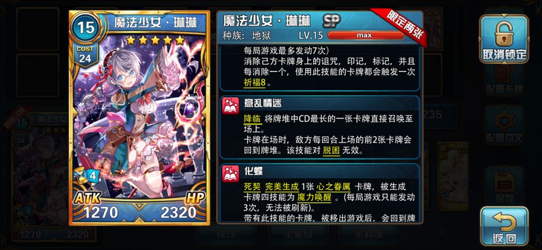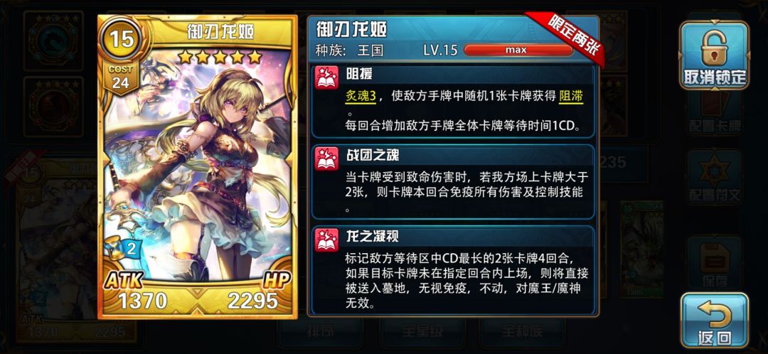 每回合增加对方全手卡1cd,这个就是关键卡了,两张虎魄,对面就出不了卡,直接打脸就可以打死了,没有急护星云,就用0cd的月樱,越多越好。第一回合拉完就完事了。当然,如果你要一键24关,必须要对付敌人的0cd星云卡,