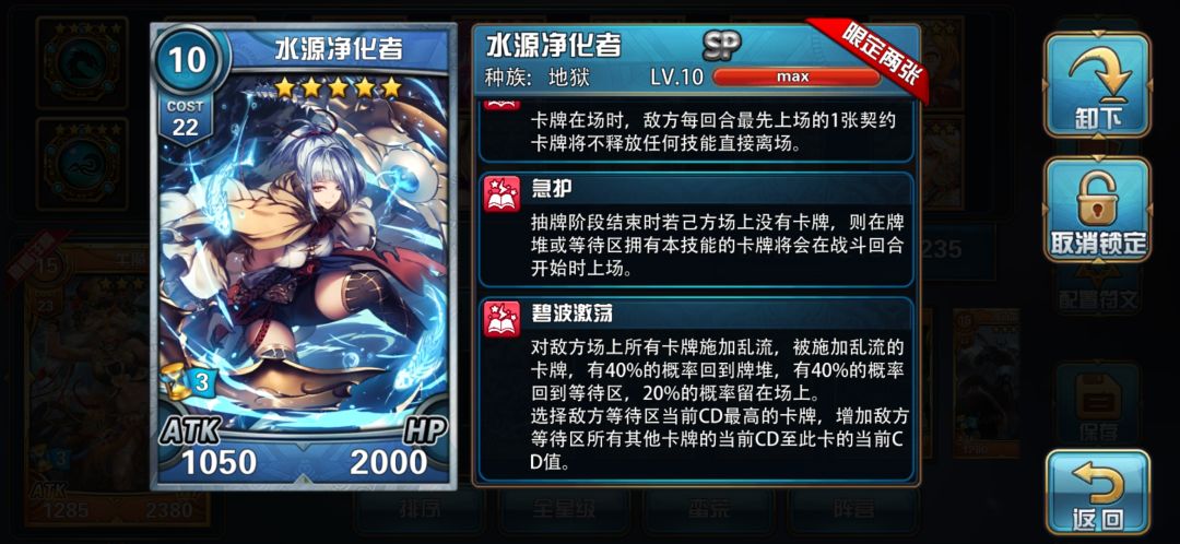 水源可以让对方手卡cd全部变成最高cd的卡的cd。很好地配合阻碍