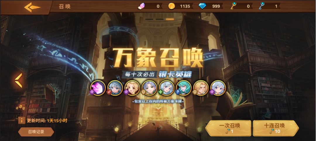 2、万象召唤中不再包含星辰召唤中的所有卡牌。(万象召唤卡池变浅了!冲鸭)