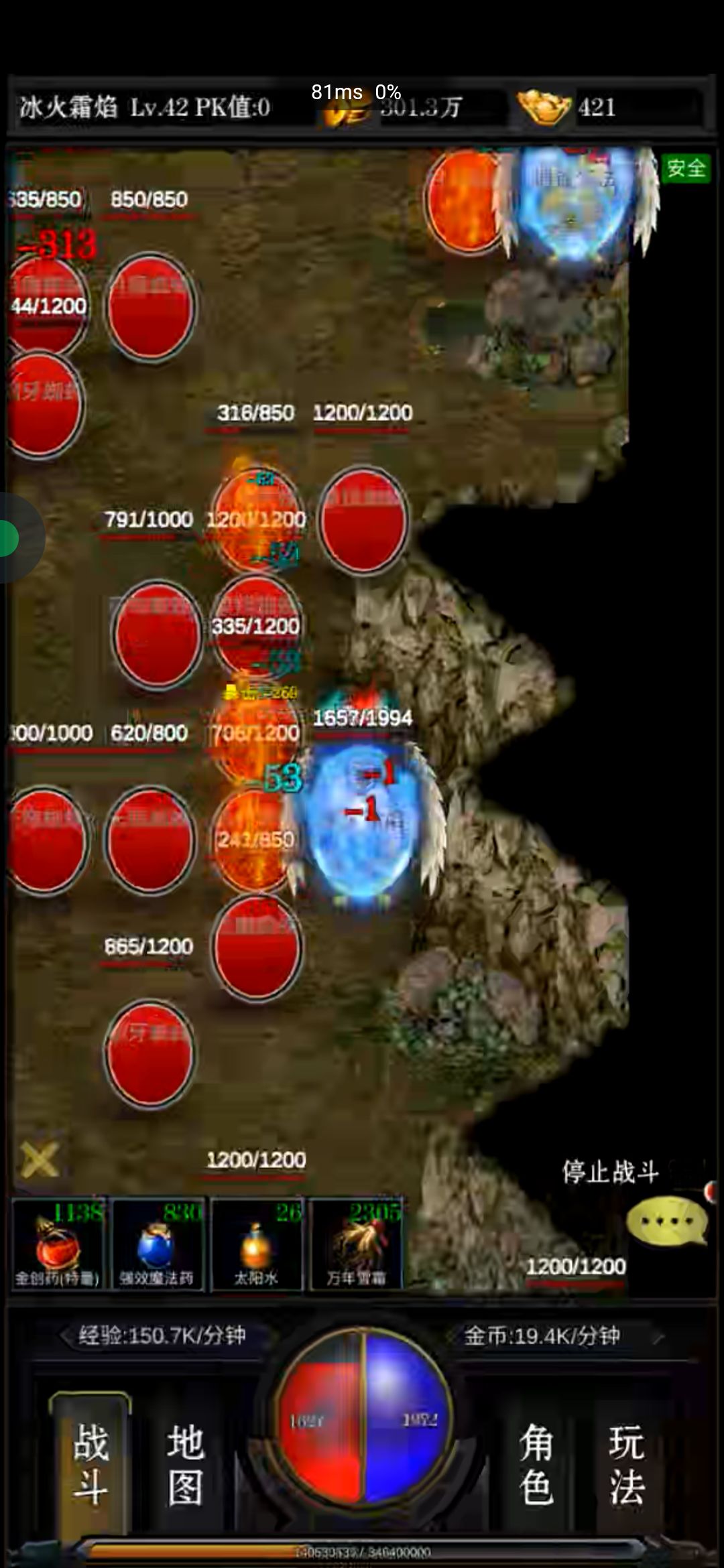 属性还不算很强,所以挂机只能找个靠墙的地方挂,经验稳定后在150K每分钟左右(开双情况下)