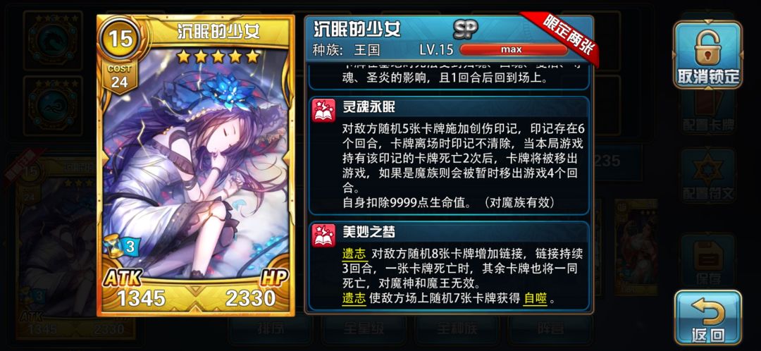 另外每个种族的回血卡都要准备一两张,炼狱魔女需要回血卡撑场面,还有降低英雄受伤害的卡,例如大家都有的圣律天使。装备不够好,也只能这样了,祝大家能快速洗出好的装备技能。