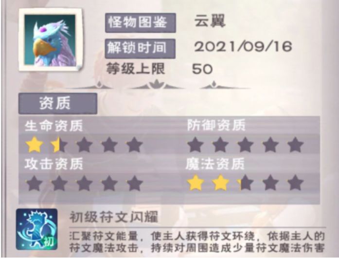 祈愿灵翼的资质范围为:生命3.550-4.150;魔攻1.720-1.976命初47-65;物初14-18;魔初9-13。