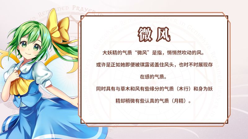 同时具有与草木和风有些缘分的气质(木行)和身为妖精却稍微有些认真的气质(月精)。