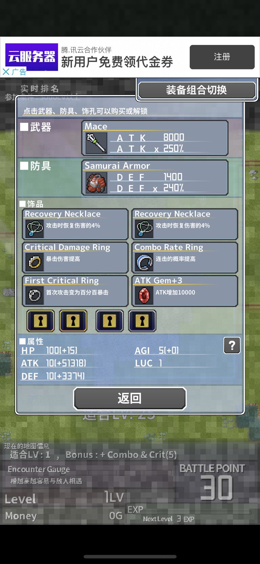 出门(带3个加经验)先往上走打750级的boss,(血和防对半点)打完继续往上把2300的boss打了,这个时候步数还有30步左右。(换成加幸运+一个加移速;这时候开始全点幸运)