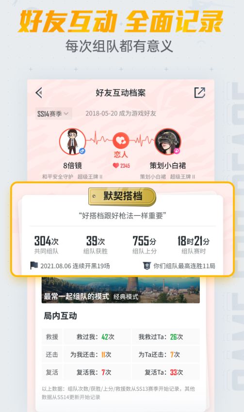 特种兵们在这里会惊喜的发现,互动档案记录了自己与好友的每一个细节,从相遇时间到组队数据再到局内互动,所有数据都被清晰的保留了下来。