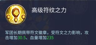 军团长期佩戴符文徽章,受符文之力影响,攻击增加30.5,血量增加235