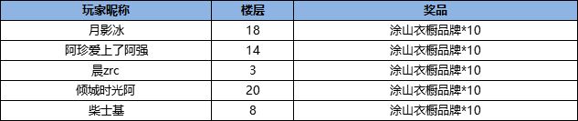 8.获奖规则:从有效楼层中随机抽取幸运玩家,若中奖楼层无效,将顺延至下一楼层,最多顺延5楼,如仍无符合要求的回复,则取消该奖励;