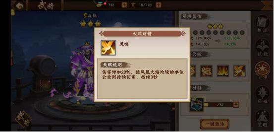 3冠天赋(凤鸣):伤害增加20%,被凤凰火焰灼烧的单位会受到持续伤害,持续3s。