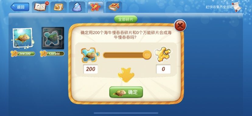 领取到的海牛碎片就在你的鱼碎片中,把碎片进行兑换,就可以获得海牛啦~