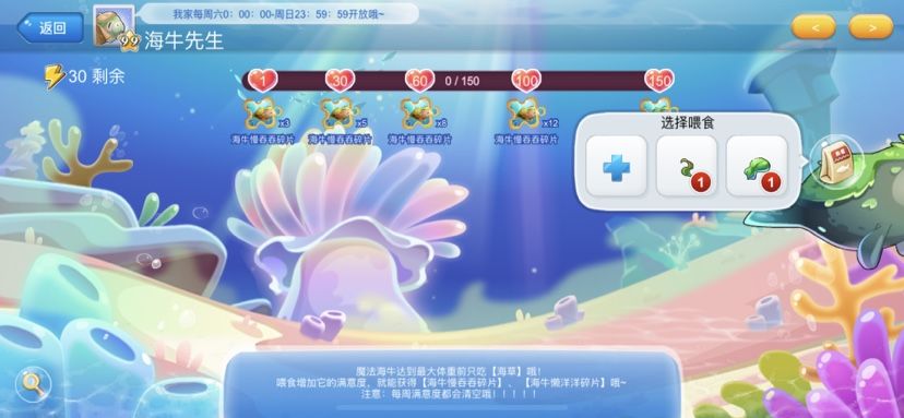 4、无法为好友的海牛喂食,把海草都留给你自己的海牛宝宝吧~