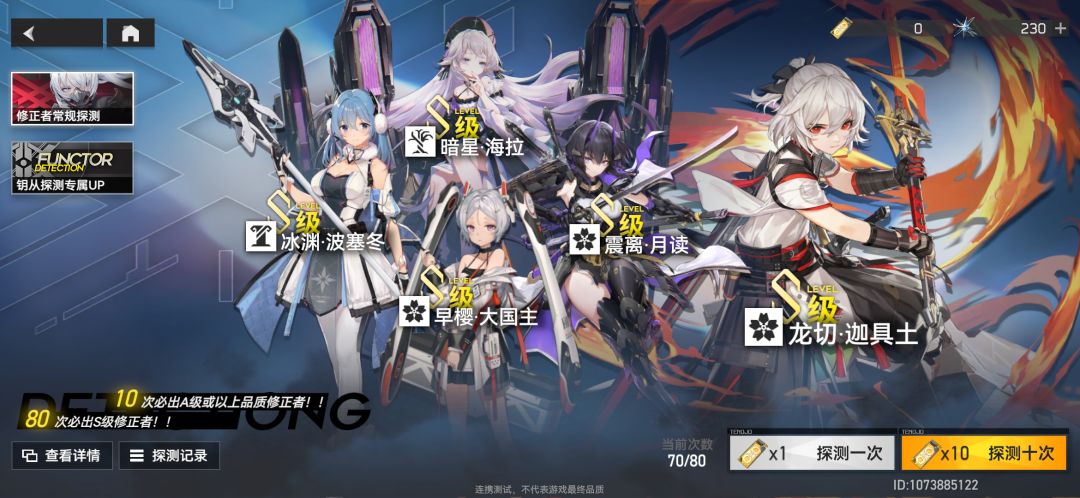 游戏里的角色,也就是修正者,分为了几个派系,风格分明,一眼就知道是什么类型,然后分为B.A.S级等等,b级也是可以通过超越用情报升级为S,不过话说这是删档测试服,我抽了70发,还是只得到一个s,未免有些拮据了吧,想要体验一下其他s,未免有点难度啊。