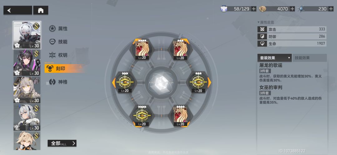 -刻印也相当于额外属性加成挂件,最多装六个,还有相同三个为一套的套装效果,所以需要选合适的刻印给合适的修正者,刻印也需要分品质,3星4星5星等等,肯定最高的好。