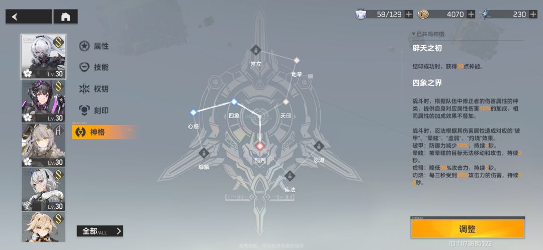 -神格可以说是修正者的专属天赋,最多可以共鸣三个,但是一共却有九个属性,然后分别通过条件来解锁,所以需要自己去共鸣三个合适的。