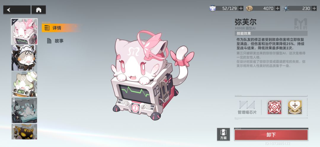 以及还有一个小东西,管理喵,理解成宠物就行,但是他不会在战斗中出现,每一只喵也是通过条件解锁,每一只喵也可以带两个技能,分别也是通过条件解锁。