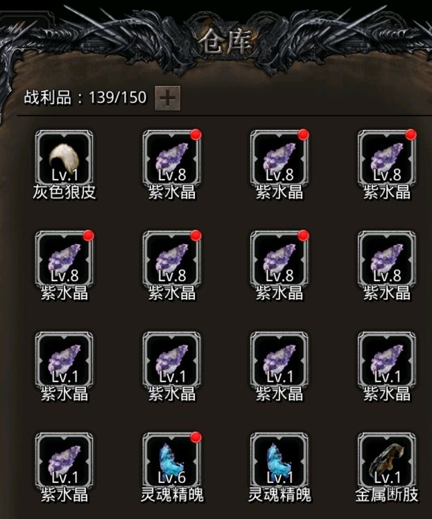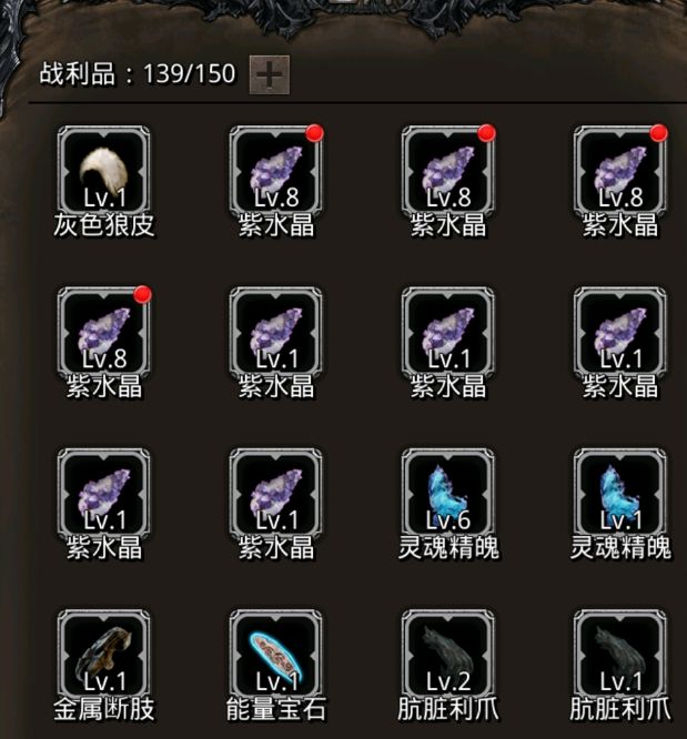 套装B 装备 157件,战利品 139件,8级紫水晶 4个;