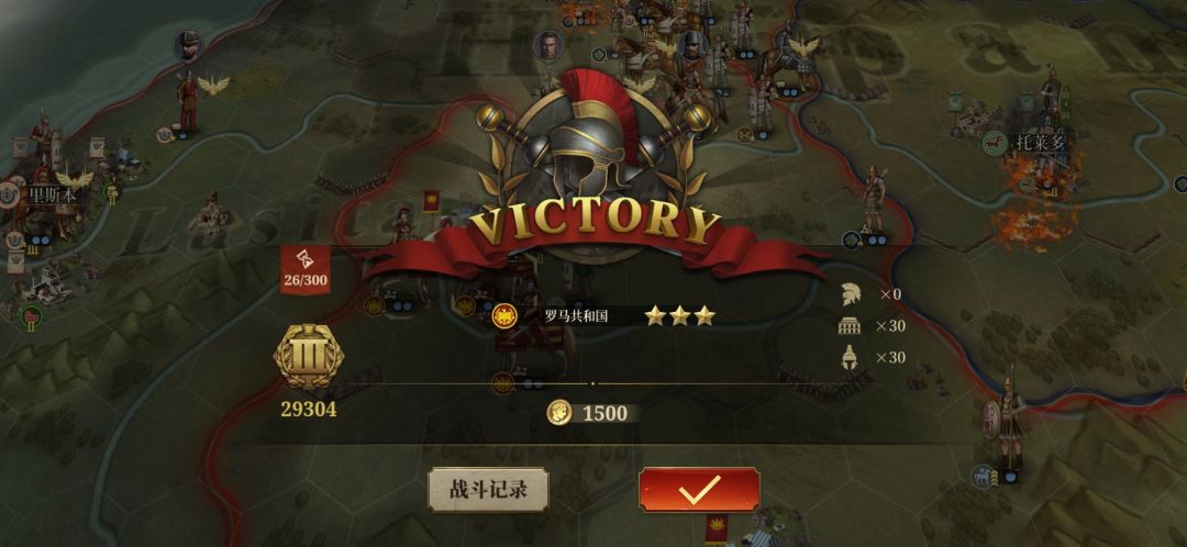 所以就出了一个无将通的帖子,虽然说征服一中是最不吃将领的,但是征服一中,罗马也是最弱的。而且政府一中地图小,可以让我快速完成