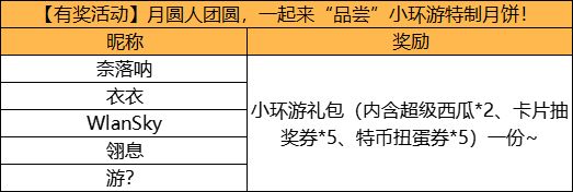 在评论下方选择你喜欢的月饼并分享原因就可以参与活动啦~我们将抽取10位玩家送出小环游礼包(内含超级西瓜*2、卡片抽奖券*5、特币扭蛋券*5)一份~