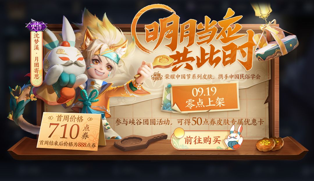评论区写下你的中秋祝福,或者晒出你的沈梦溪战绩,就有机会获得【沈梦溪-月团寄思】永久皮肤~