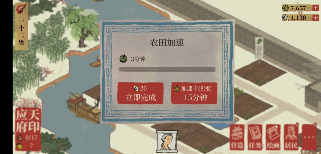 农田一直显示制作 点加速卡和补天石都不会完成一直是3分钟的状态还占一个劳工
