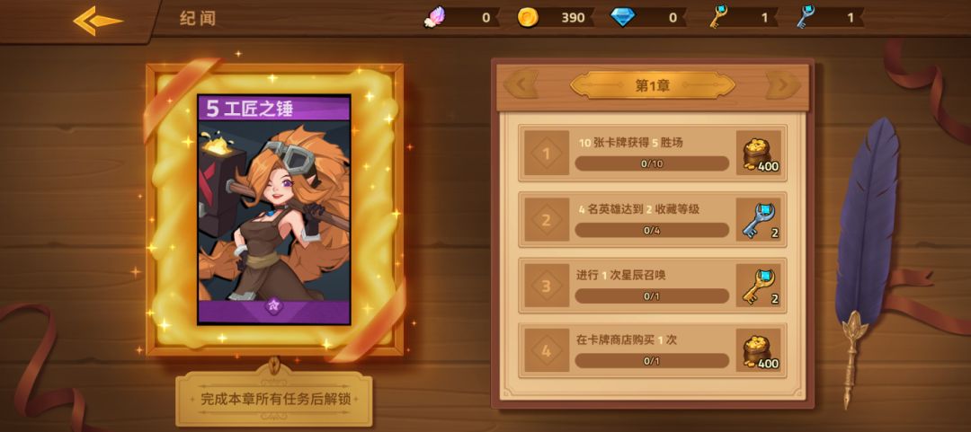 3、完成每个篇章内的 4 个任务,还会额外奖励该篇章专属限定的青铜英雄卡或青铜道具卡!