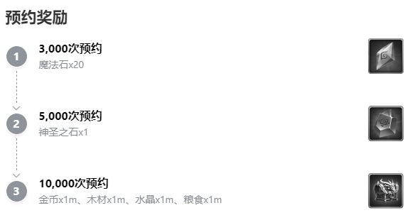 10000次预约:金币x10W、木材x10W、粮食x10W、水晶x10W