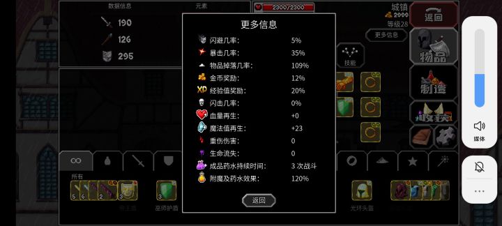 不足之处就是,貌似20到30层经验和金币和水晶好像没有高层肥,不过刷药水还是很舒服的