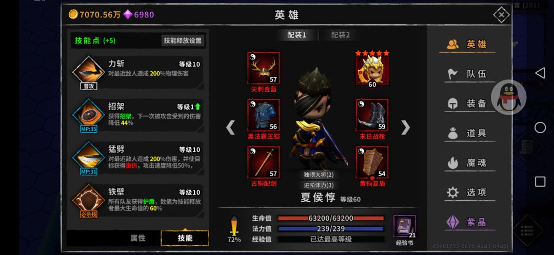 上面魔魂做好后 诸葛主手500暴 副手异常7 可以轻松60层 队伍有甄姬 诸葛装备可以不需要防闪 回蓝 全输出属性!