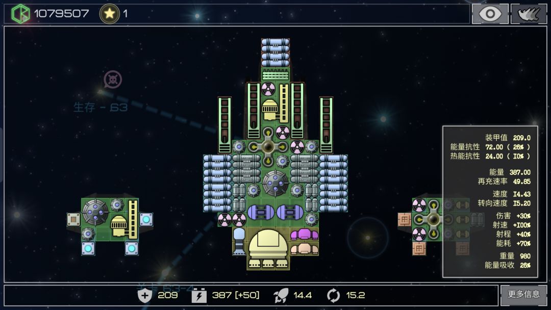 三死光半顶配291颗星。配的武器攻速。使光绪能缩短到三秒,只要不是一下子20几艘电磁脉冲鱼雷和4、5只大虫子都可以过。我这个装甲还没满,而且是不加无人机,所以续航能力可能没那么强。打虫族难打一点。现在打到六十多关基本上两分钟就能过。
