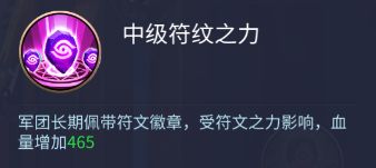 中级符文之力:军团长期佩戴符文徽章,受符文之力影响,血量增加465