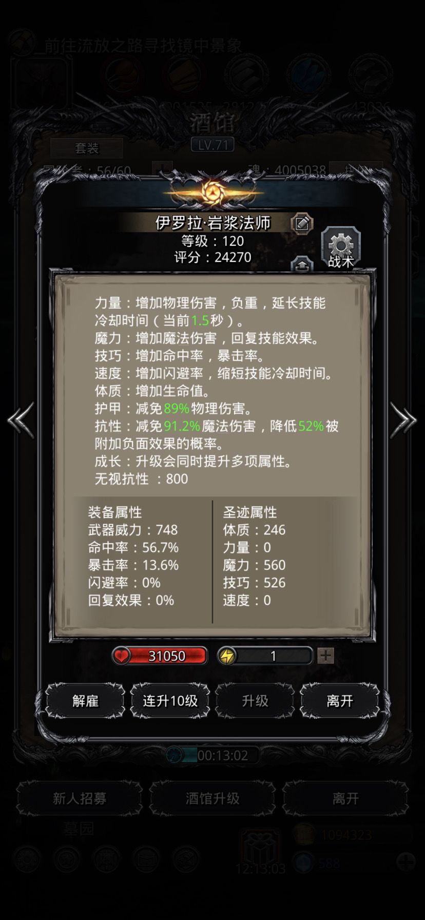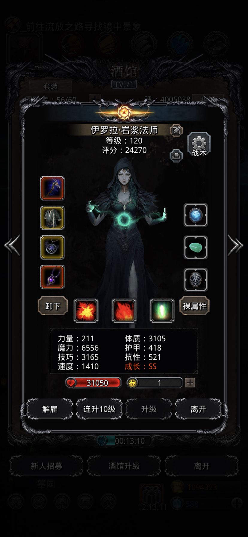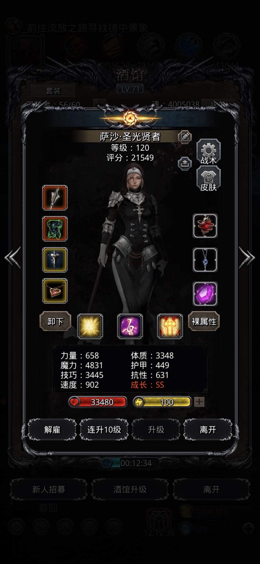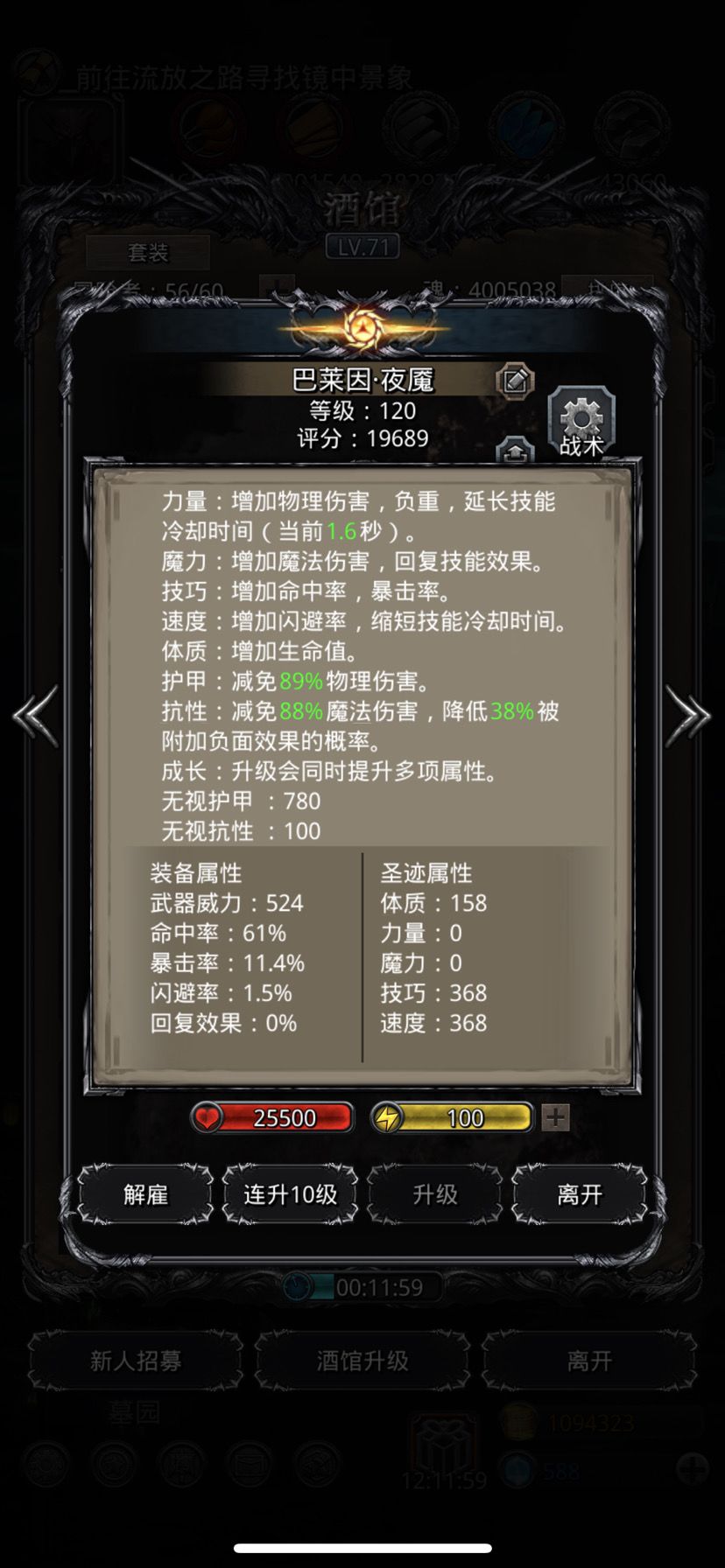 50个黑水晶打到26个,还加上复活次数。圣光跟狂战带了先发,火法没带(不带也是比小怪先手,脸好出魔爆增幅,基本没压力),夜魇带了个吸血。小怪阶段,圣光-始终奶;火法百分百奶,炎爆术-经常开;都是开攻击血量最低,狂战一击后,看被打的小怪有没到415万左右,到了夜魇能压下去(小怪自奶线405万),转手动打另一个,再设置攻击剩余血量最多,切自动,打完一组小怪后再设回攻击血量最低。最后一组一个小怪时,狂战改为手动状态下的-乾坤一击,火法也改为手动状态下的-炎爆术,打完圣光跟夜魇扎营互换上衣甲。BOSS阶段,技能设置,圣光-开始终“”神圣净化”;火法-群攻。狂战直接手动打BOSS,一击后切自动,手动火法炎爆术打BOSS,打到20秒左右切回自动-群攻,后面看BOSS血量是不是差那么一丢丢就可以打死,火法再补个手动-炎爆术,BOSS死后,狂战改为群攻,夜魇设为攻击剩余血量最多,挂机!
