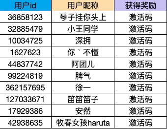 恭喜以下几位小伙伴获得奖励!我们将通过站内通知将激活码发给大家