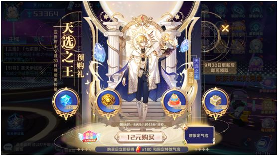 2、购买12元亚当预购礼,将立即获得180星币和亚当聊天气泡x1。