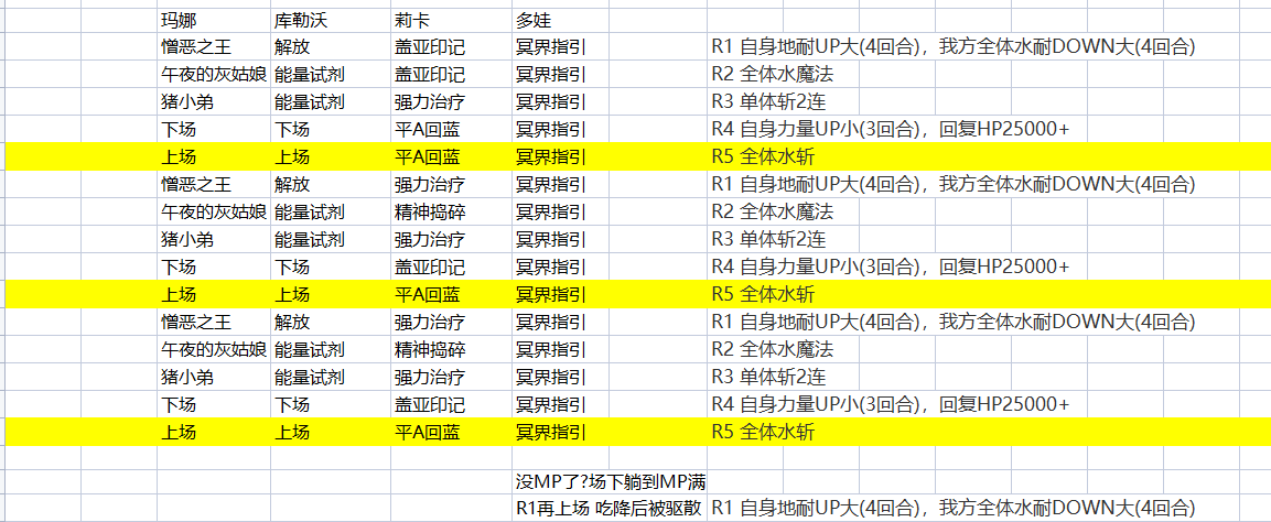 ①两个空位 随意吧 可以来点智力buff与玛娜轮换 但是r5要库勒沃自己上场确保在后手