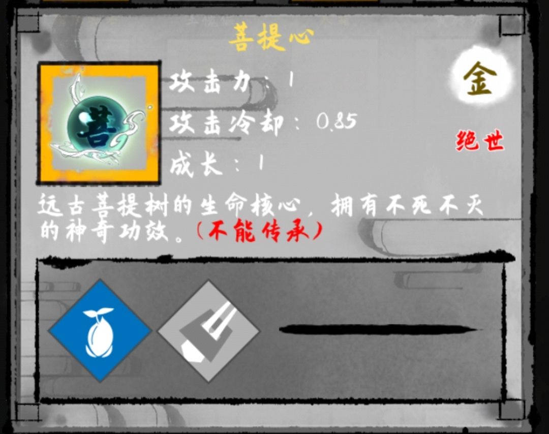 战斗中每秒自动恢复2%的生命值,若菩提心为木属性,则你可以在战斗中复活一次(每场战斗限一次),复活后血量和蓝量为之前的一半。来源.秘境获得。